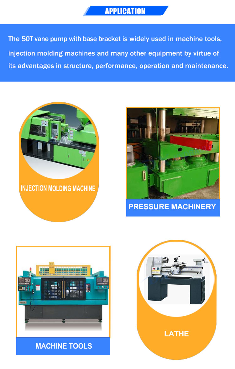 50T带底座支架叶片泵凭借其在结构、性能、操作维护等方面的优势,广泛应用于机床、注塑机等诸多设备。