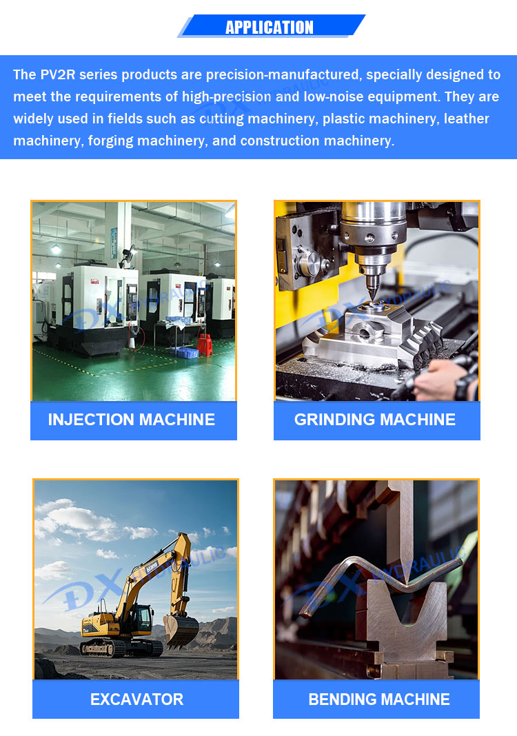 PV2R系列产品经过精密制造,专为满足高精度、低噪音设备的要求而设计。广泛应用于切削机械、塑料机械、皮革机械、锻造机械、工程机械等领域。