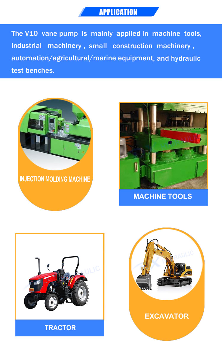 V10叶片泵主要应用于机床、工业机械、小型工程机械、自动化/农业/船用设备、液压试验台等。