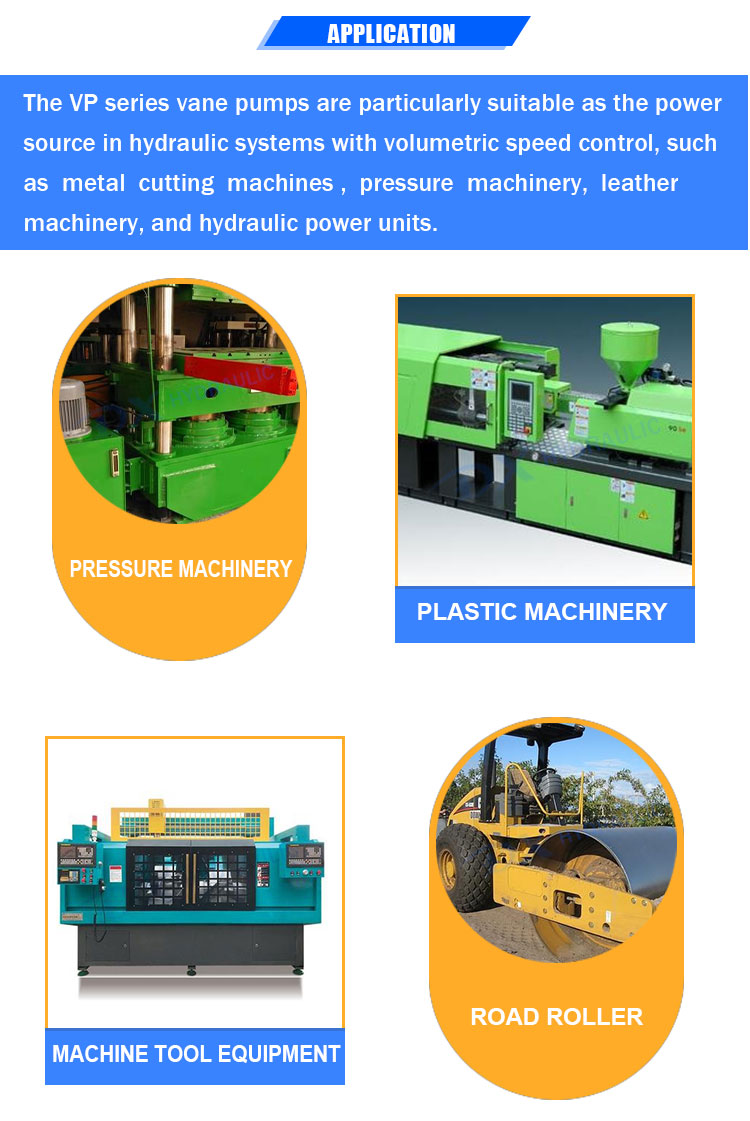 VP系列叶片泵特别适合作为具有体积速度控制的液压系统的动力源,例如金属切割机,压力机械,皮革机械和液压动力装置。